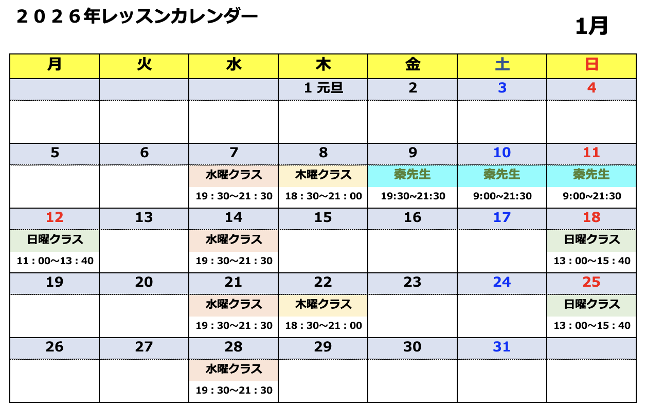 ※講師の体調や気象状況その他にてスケジュールが変更される場合や休校する場合もあります。