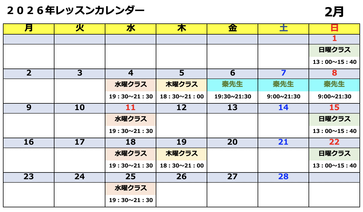 ※講師の体調や気象状況その他にてスケジュールが変更される場合や休校する場合もあります。