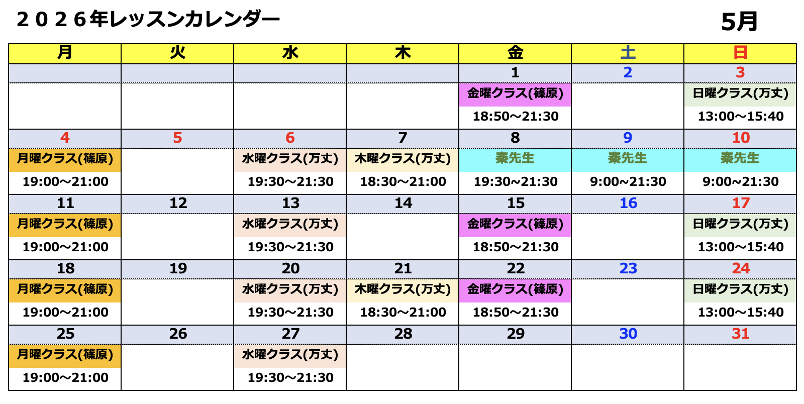 ※講師の体調や気象状況その他にてスケジュールが変更される場合や休校する場合もあります。