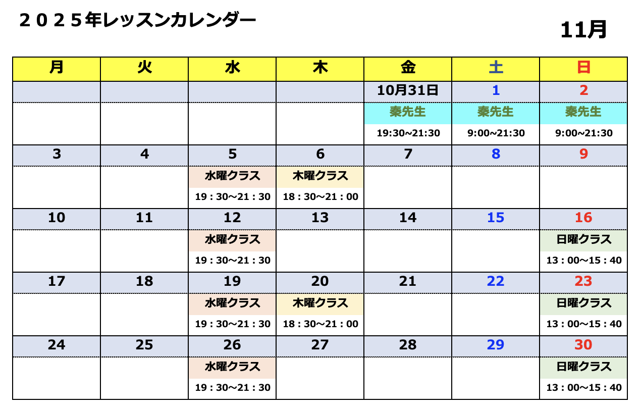 ※講師の体調や気象状況その他にてスケジュールが変更される場合や休校する場合もあります。