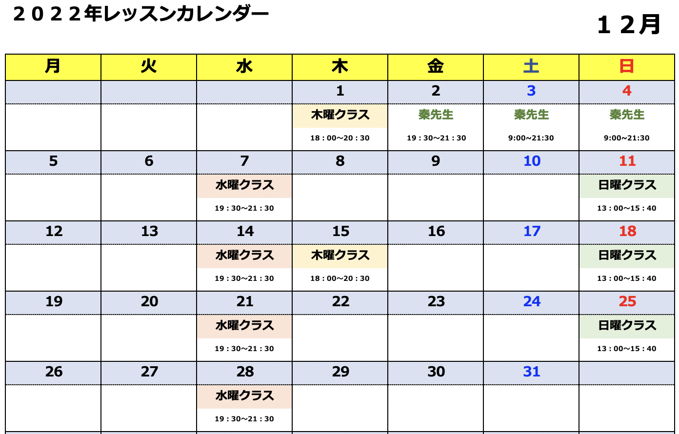 ※講師の体調や気象状況その他にてスケジュールが変更される場合や休校する場合もあります。