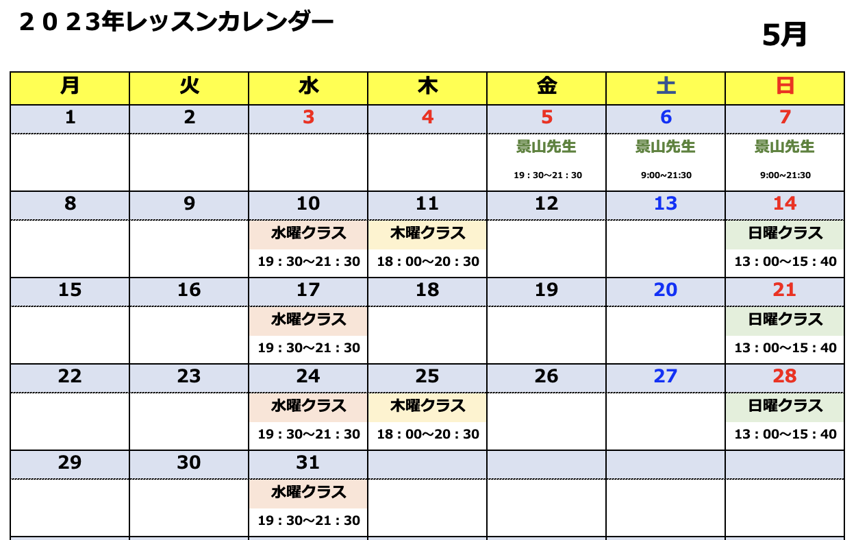 ※講師の体調や気象状況その他にてスケジュールが変更される場合や休校する場合もあります。