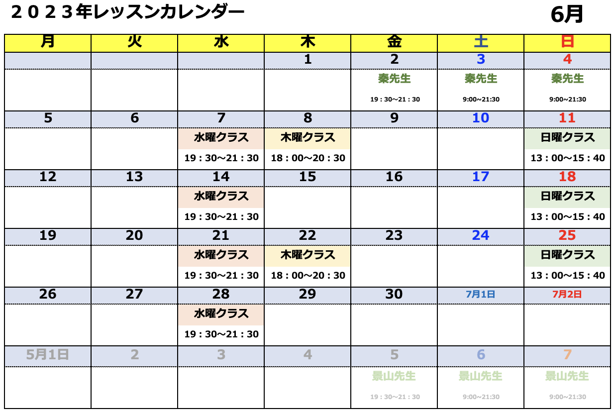 ※講師の体調や気象状況その他にてスケジュールが変更される場合や休校する場合もあります。