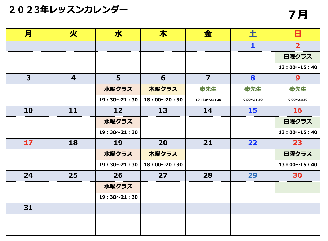 ※講師の体調や気象状況その他にてスケジュールが変更される場合や休校する場合もあります。