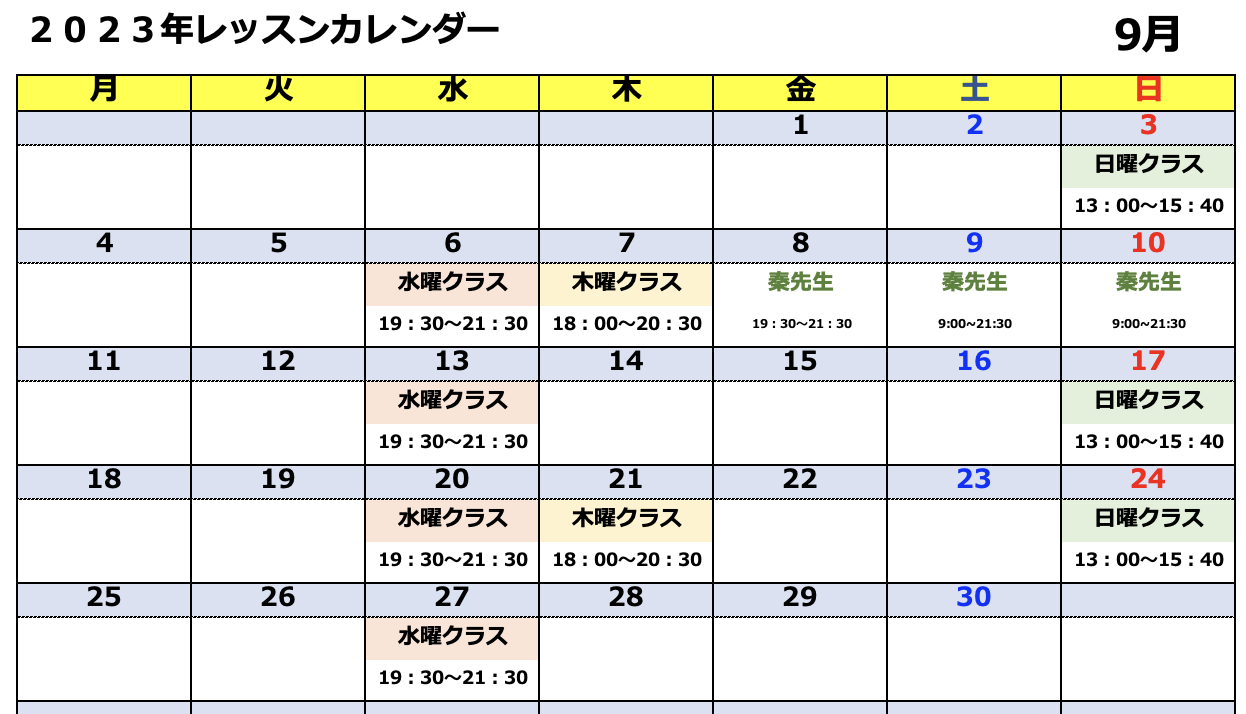 ★2023年9月の演技レッスン開催日時★