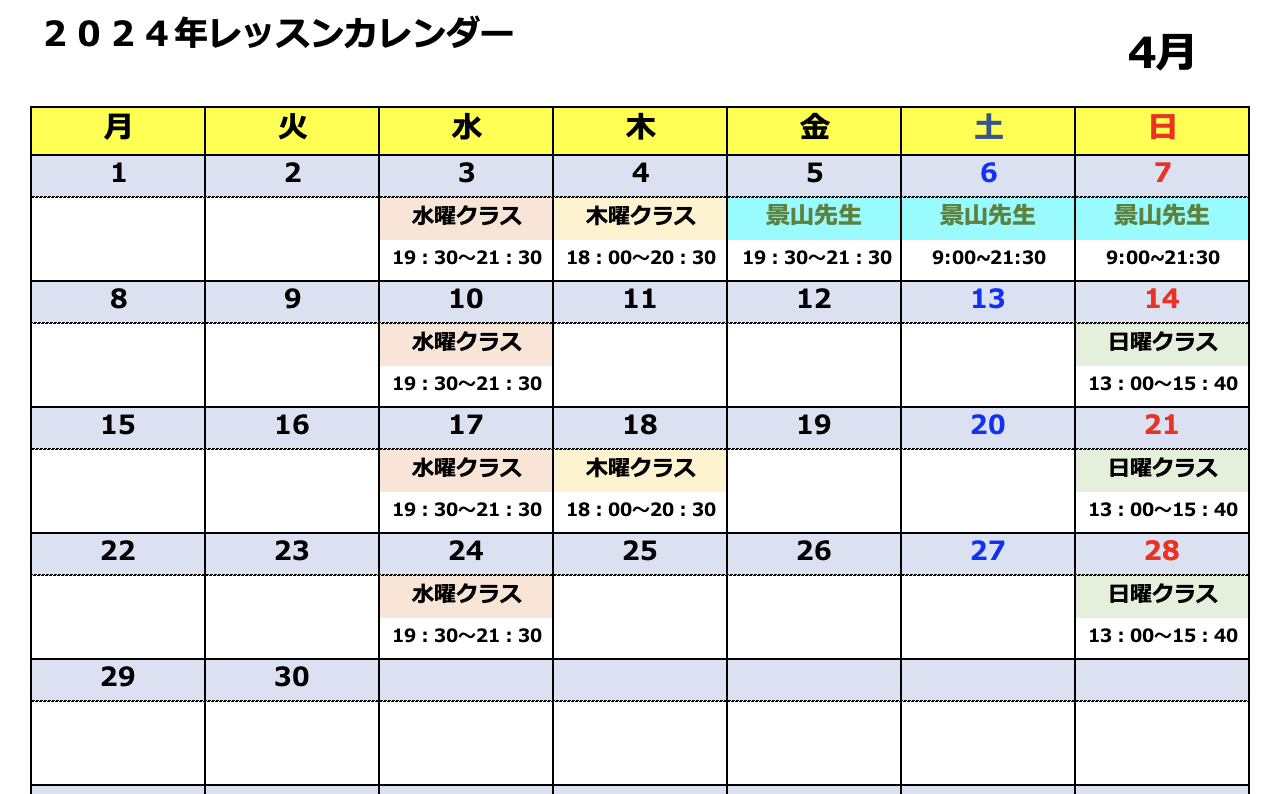 ※講師の体調や気象状況その他にてスケジュールが変更される場合や休校する場合もあります。