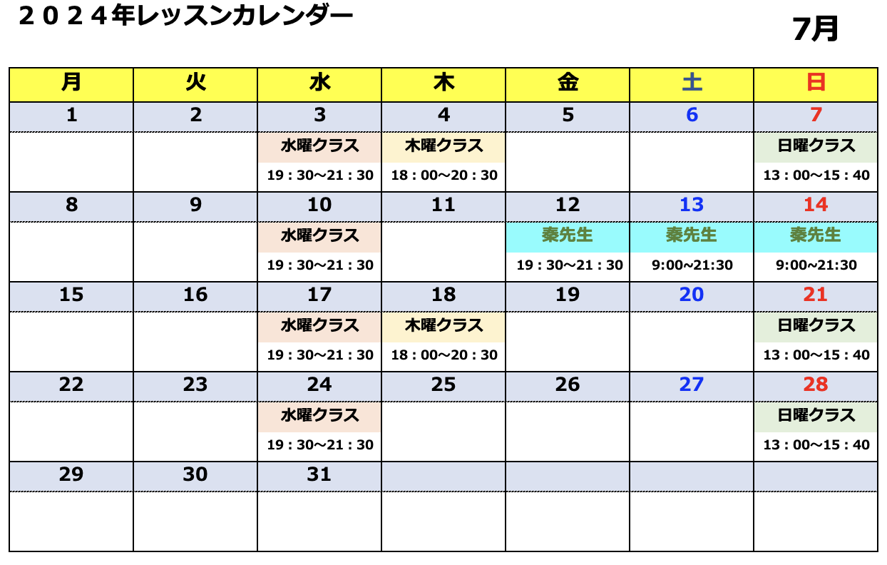 ・水曜・日曜クラス 7,000円(税込)/月