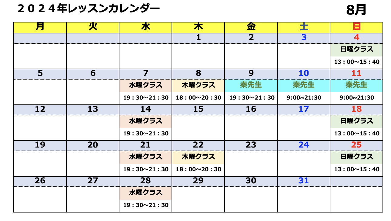 ※講師の体調や気象状況その他にてスケジュールが変更される場合や休校する場合もあります。