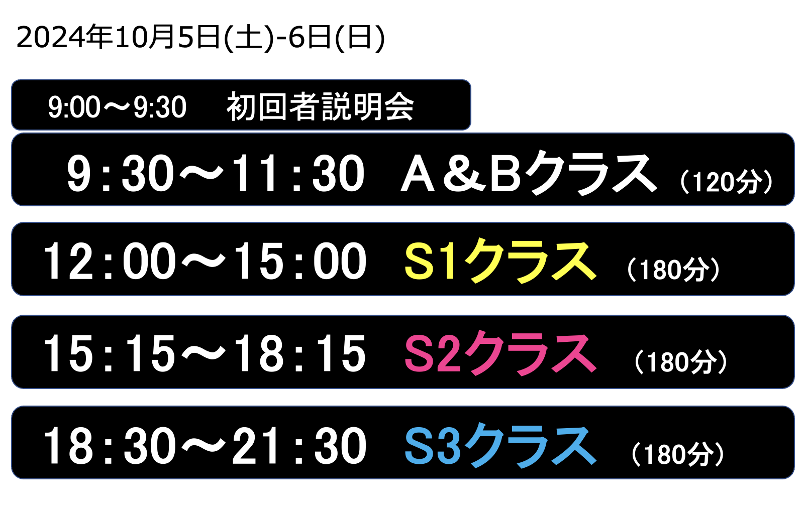 ※ Sクラスは基本、両日の受講が必須となります。(難しい場合はご相談下さい。)