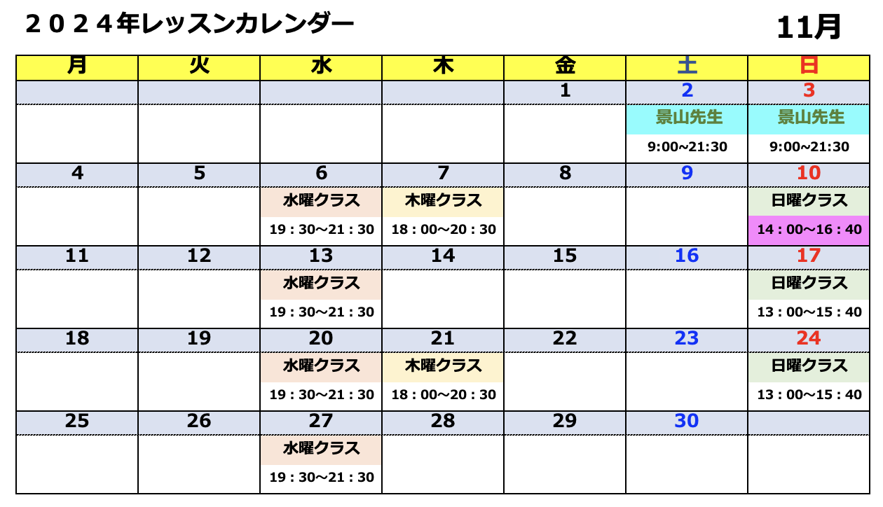 ※講師の体調や気象状況その他にてスケジュールが変更される場合や休校する場合もあります。