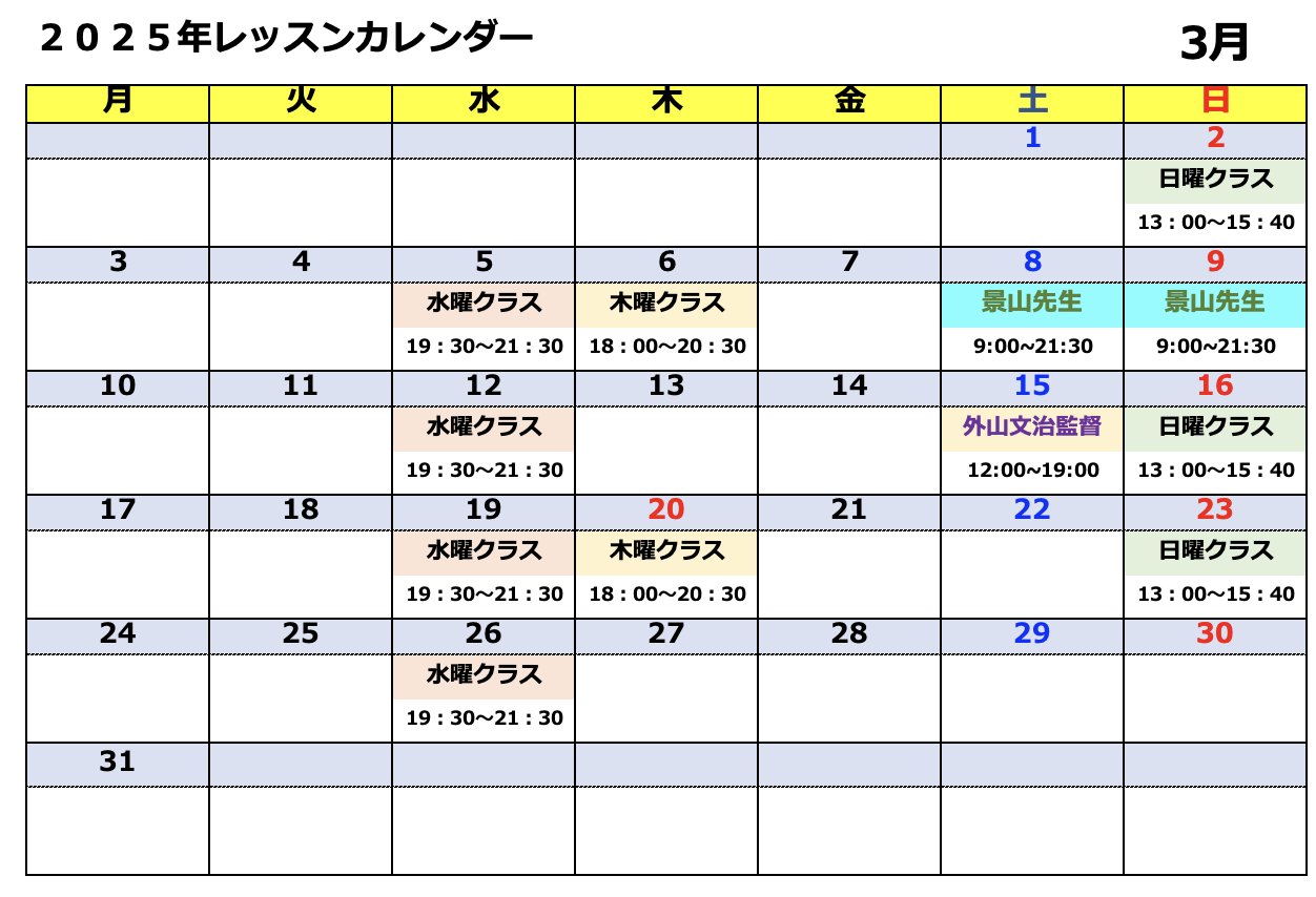 ※講師の体調や気象状況その他にてスケジュールが変更される場合や休校する場合もあります。
