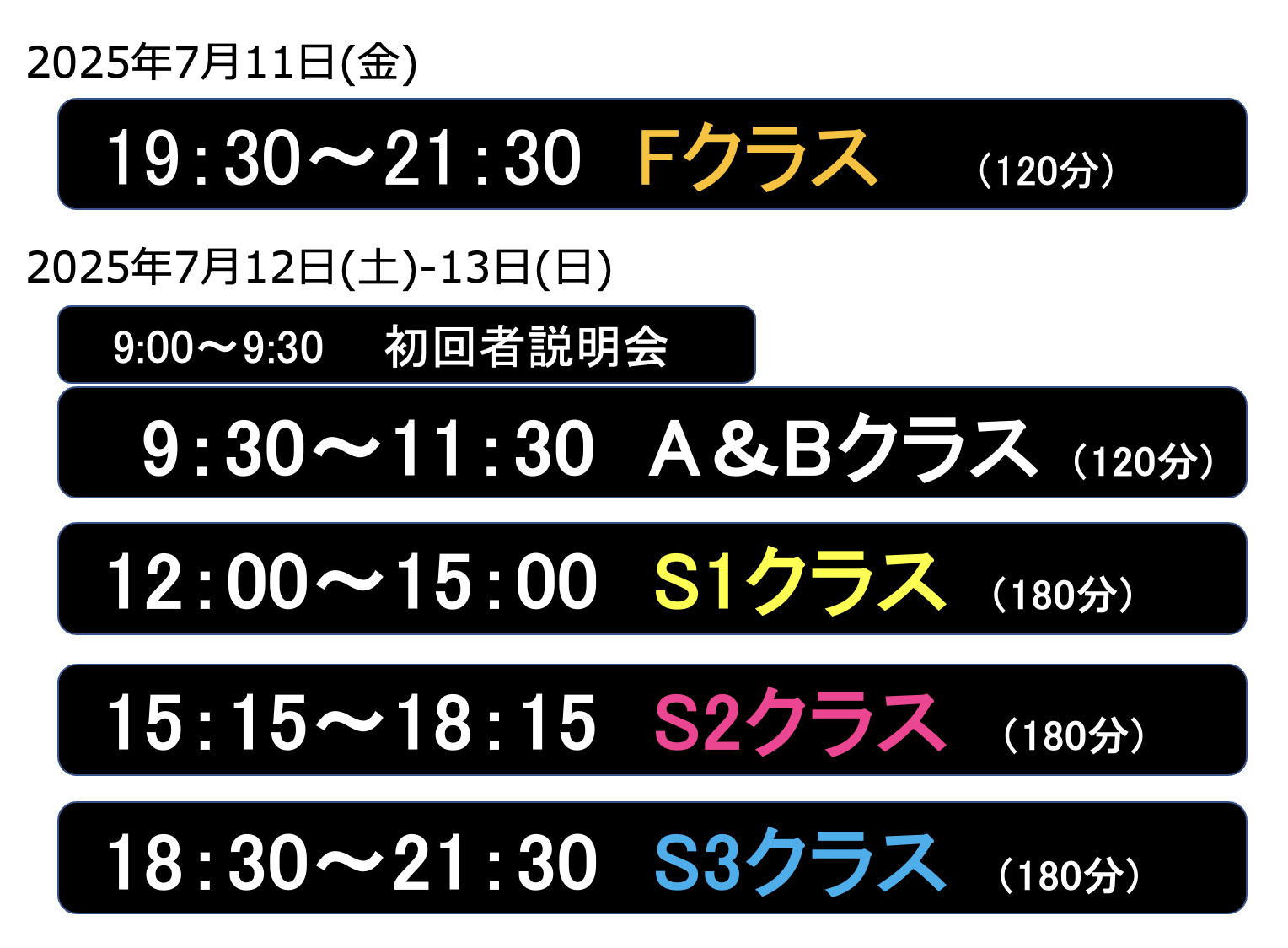 ※7/11のFクラスと、7/12-13の各クラス併用も可能です。