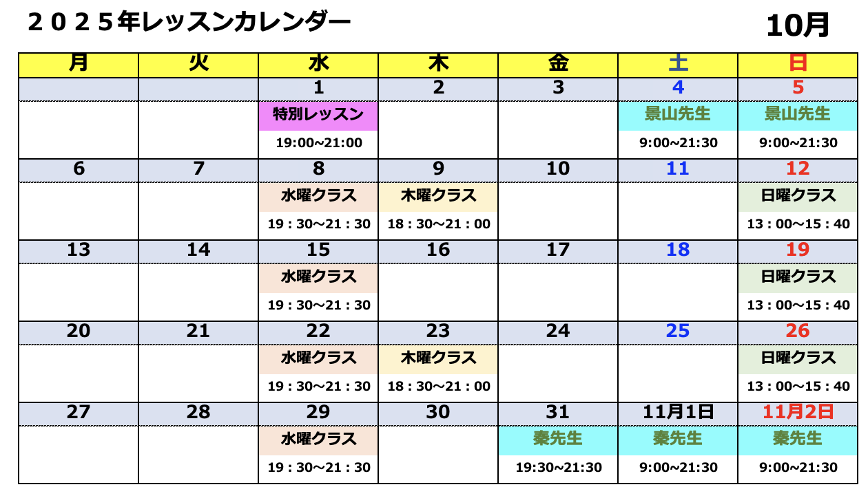 10月1日(水)は、宮田氏による月謝制レッスンの補助的な意味合いのレッスンとなりますので、10月に受講する月謝制レッスンの生徒(水・木・日クラス問わず)のみ参加可能です。定員20名予定