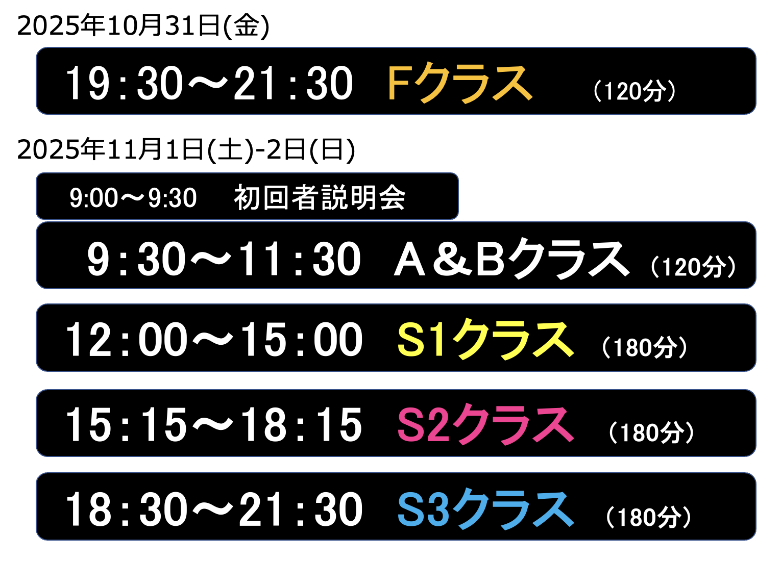 ※10/31のFクラスと、11/1-2の各クラス併用も可能です。